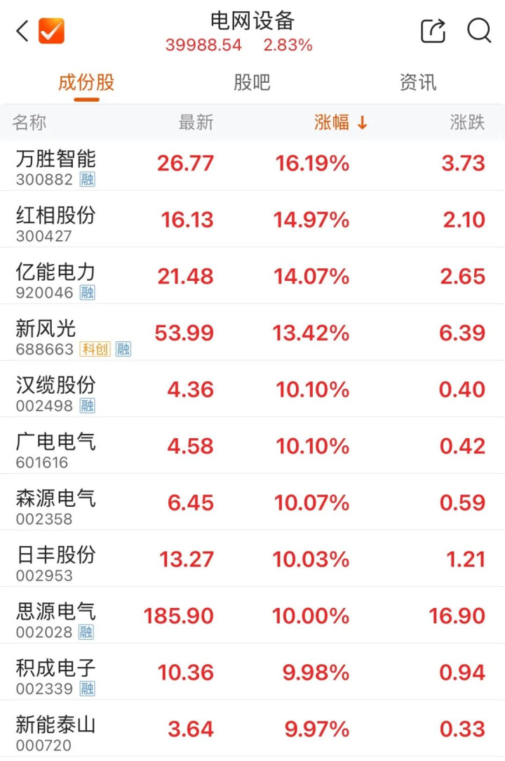 电网设备板块多只个股涨停